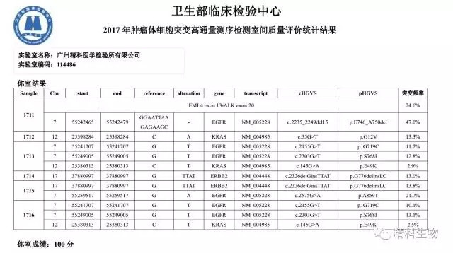 2016年6月17日,國(guó)家衛(wèi)生部臨床檢驗(yàn)中心公布了《2016年全國(guó)臨床檢驗(yàn)室間質(zhì)量評(píng)價(jià)報(bào)告》,廣州精科醫(yī)學(xué)檢驗(yàn)所有限公司首次申報(bào)參評(píng),便以總成績(jī)100%的傲人成績(jī)通過了“外周血胎兒染色體非整倍體(T21,T18和T13)高通量測(cè)序”第一次室間質(zhì)量評(píng)價(jià)。